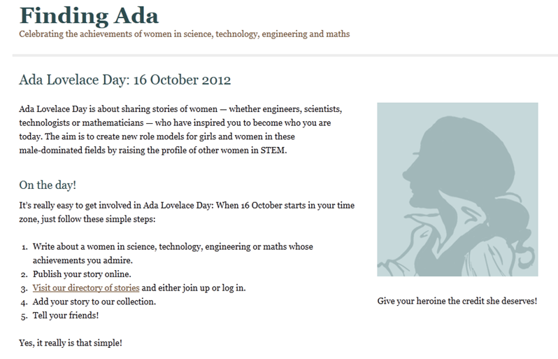 Or you can take part at FindingAda by nominating a woman in science/mathematics etc. who has inspired you.